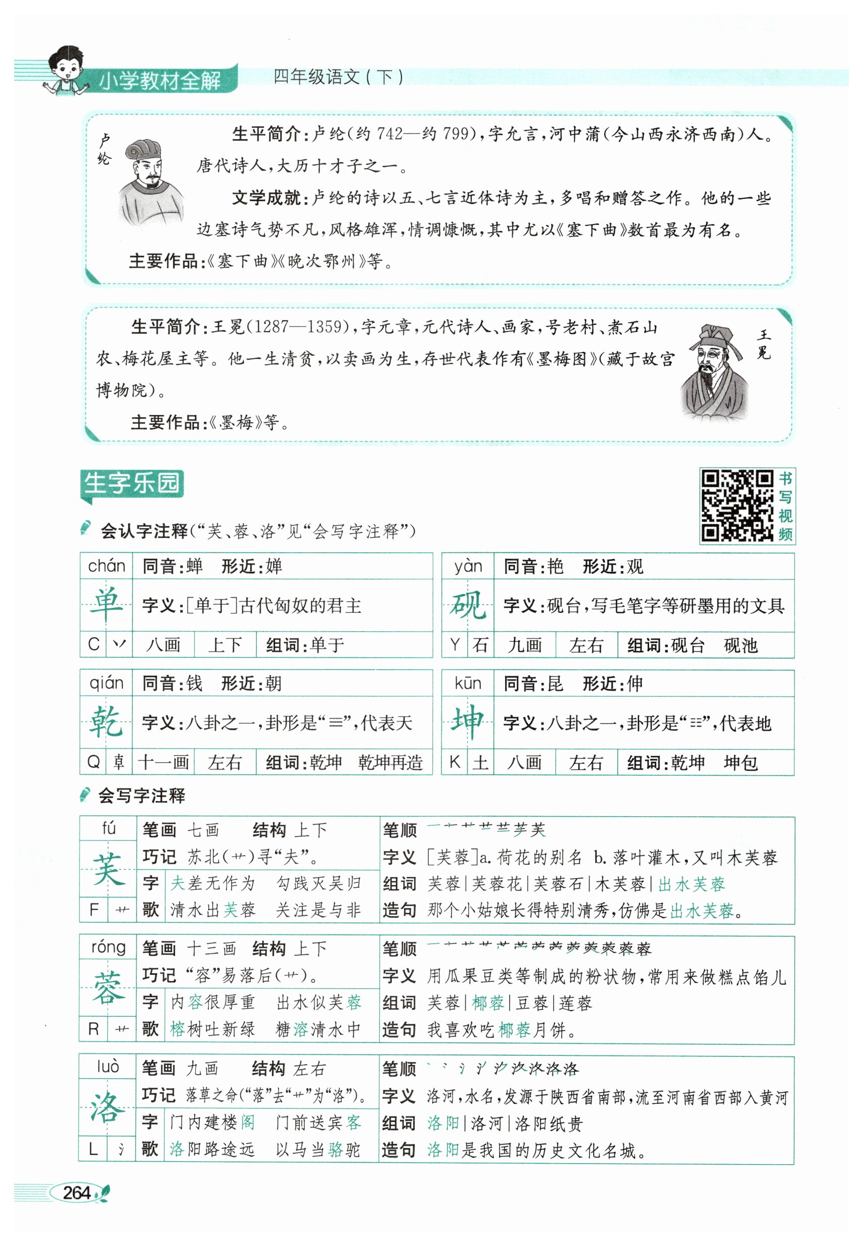 注:目前有些书本章节名称可能整理的还不是很完善,但都是按照顺序排列的,请同学们按照顺序仔细查找。练习册 2025年教材全解四年级语文下册人教版 答案主要是用来给同学们做完题方便对答案用的,请勿直接抄袭。