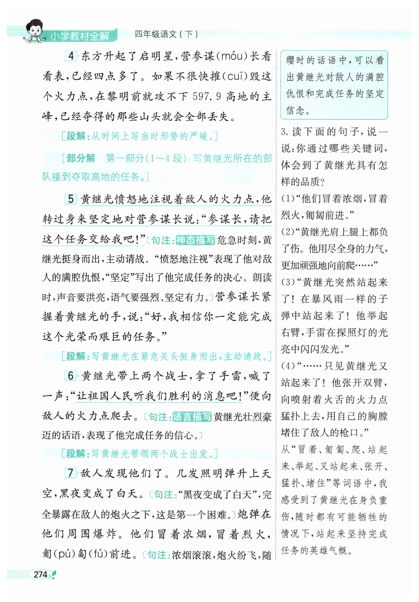 注:目前有些书本章节名称可能整理的还不是很完善,但都是按照顺序排列的,请同学们按照顺序仔细查找。练习册 2025年教材全解四年级语文下册人教版 答案主要是用来给同学们做完题方便对答案用的,请勿直接抄袭。