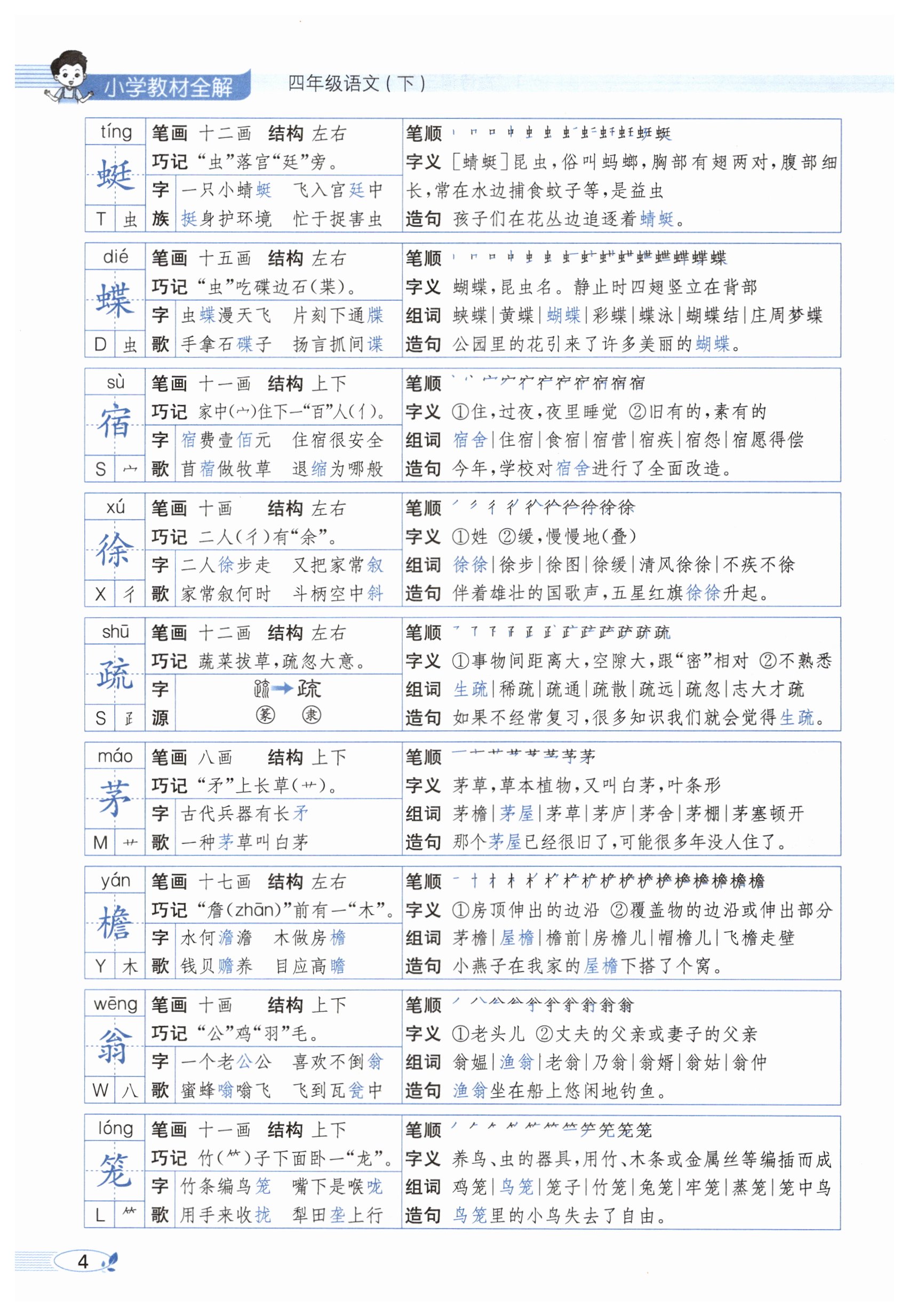 注:目前有些书本章节名称可能整理的还不是很完善,但都是按照顺序排列的,请同学们按照顺序仔细查找。练习册 2025年教材全解四年级语文下册人教版 答案主要是用来给同学们做完题方便对答案用的,请勿直接抄袭。