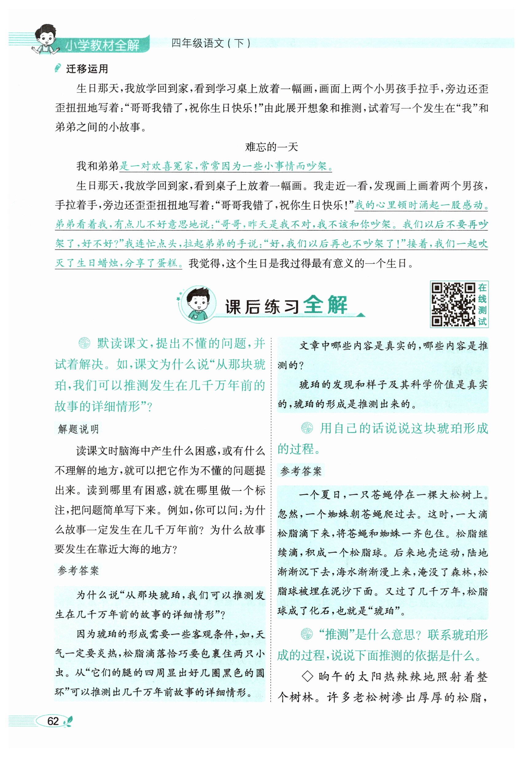注:目前有些书本章节名称可能整理的还不是很完善,但都是按照顺序排列的,请同学们按照顺序仔细查找。练习册 2025年教材全解四年级语文下册人教版 答案主要是用来给同学们做完题方便对答案用的,请勿直接抄袭。