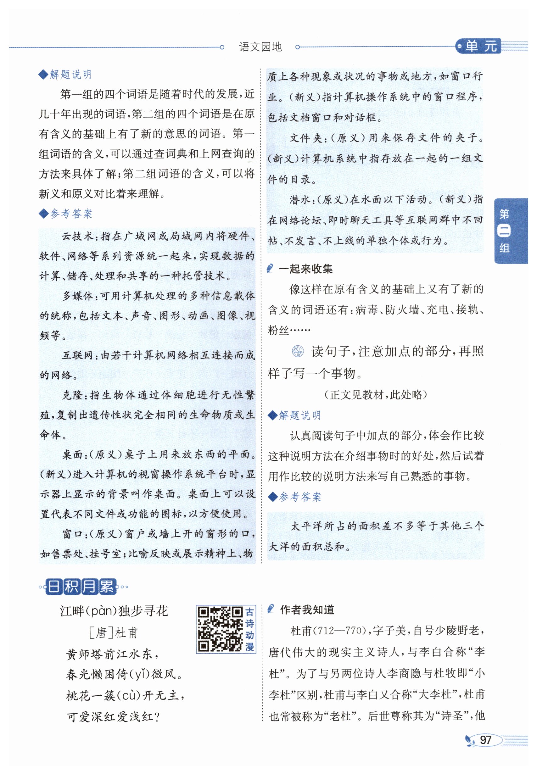 注:目前有些书本章节名称可能整理的还不是很完善,但都是按照顺序排列的,请同学们按照顺序仔细查找。练习册 2025年教材全解四年级语文下册人教版 答案主要是用来给同学们做完题方便对答案用的,请勿直接抄袭。