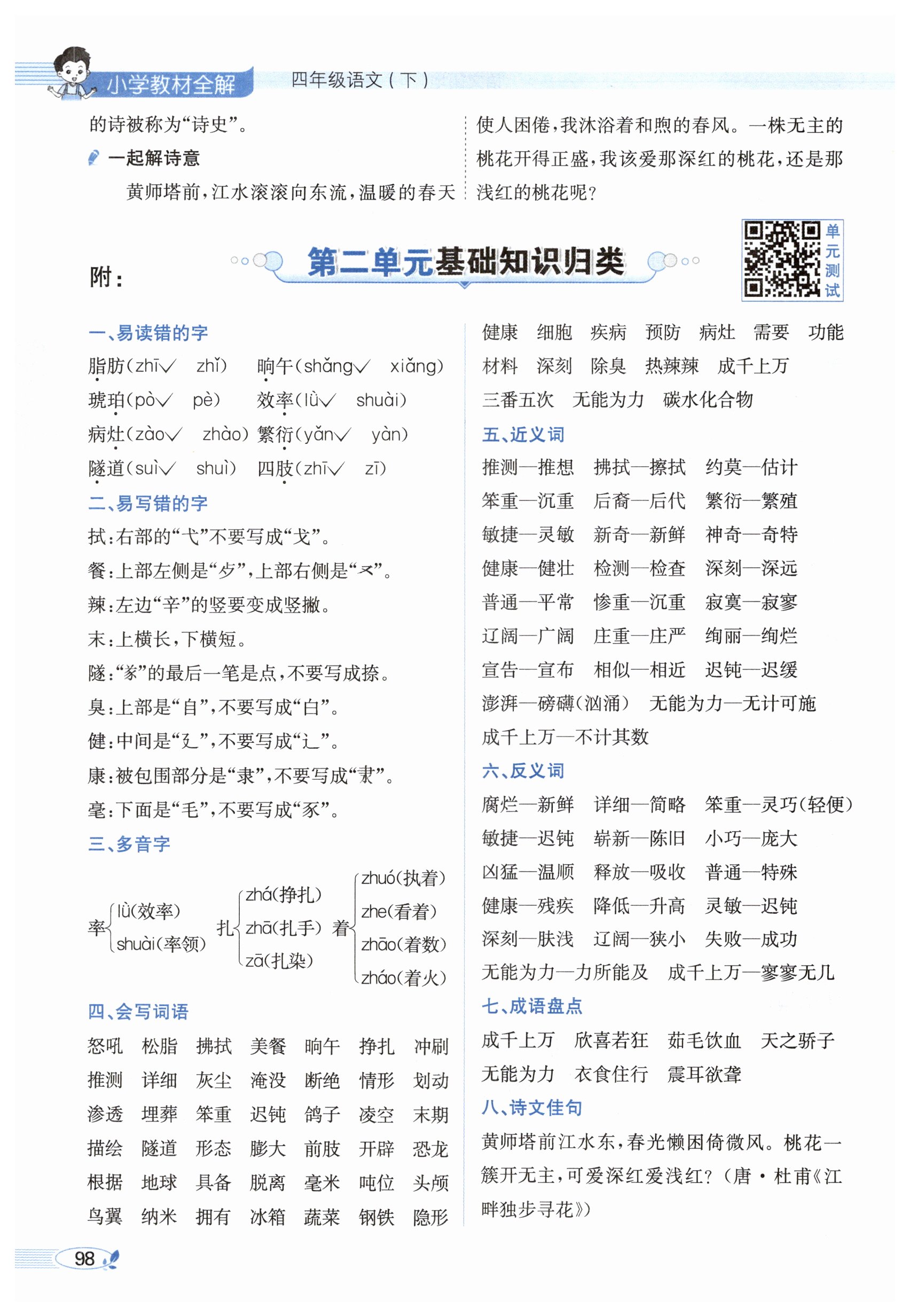 注:目前有些书本章节名称可能整理的还不是很完善,但都是按照顺序排列的,请同学们按照顺序仔细查找。练习册 2025年教材全解四年级语文下册人教版 答案主要是用来给同学们做完题方便对答案用的,请勿直接抄袭。