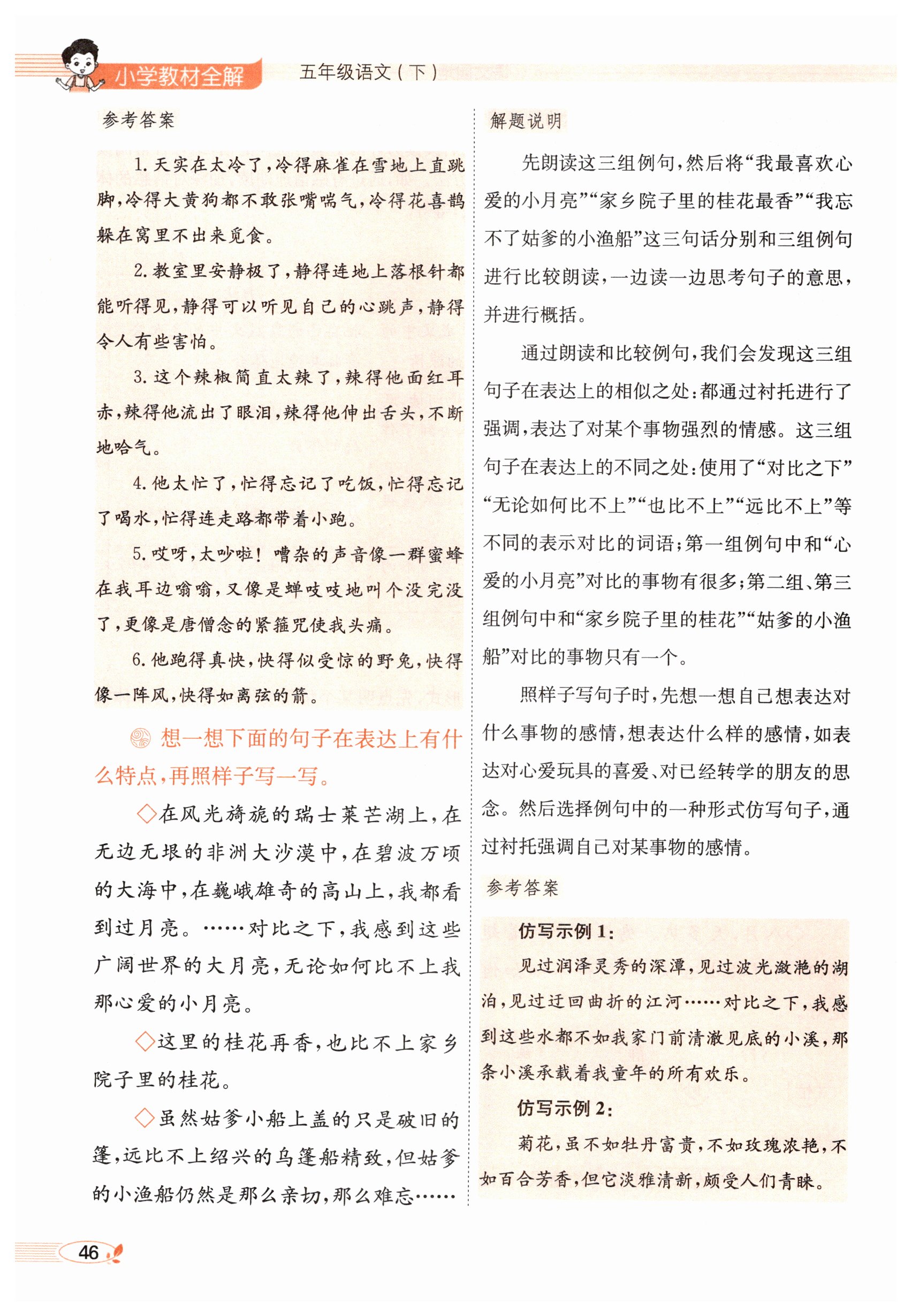 注:目前有些书本章节名称可能整理的还不是很完善,但都是按照顺序排列的,请同学们按照顺序仔细查找。练习册 2025年教材全解五年级语文下册人教版 答案主要是用来给同学们做完题方便对答案用的,请勿直接抄袭。