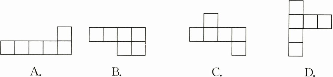 19. 下面四个图形中,能折成一个正方体的是( )。