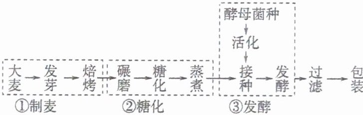 )A.过程①利用大麦发芽产生的淀粉酶进行发酵,在焙烤时该酶失活