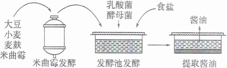 3. 工业上所说的发酵是指微生物在有氧或无氧条件下通过分解与合成代谢将某些原料物质转化为特定产品的过程。利用微生物发酵制作酱油在我国具有悠久的历史。某企业通过发酵制作酱油的流程示意图如下,回答下列问题: