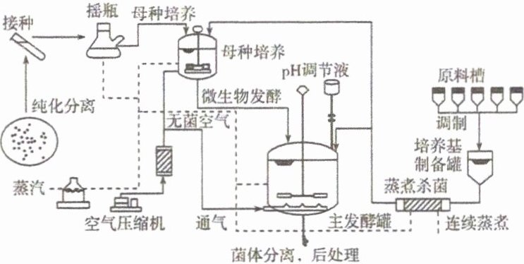 1. 青霉菌处在葡萄糖浓度不足的环境中时,会通过分泌青霉素杀死其他细菌,以保证自身生存所需的能量供应。目前已实现青霉素的工业化生产,关于该生产过程,下列说法错误的是(