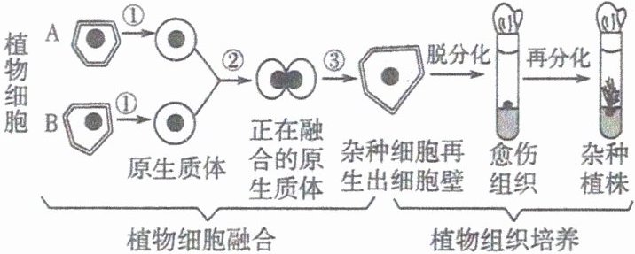的植物体细胞。(2) 过程:在一定条件下融合成杂种细胞。