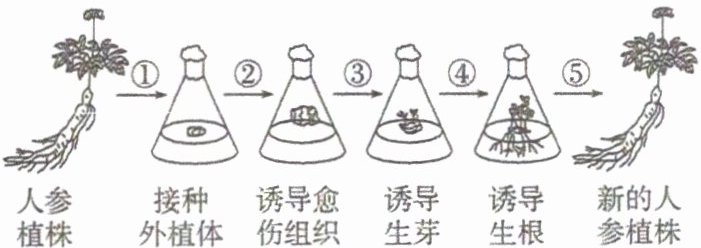 1. 人参是名贵的中药材。研究人员利用植物组织培养技术,实现了人参的快速繁殖,流程如下图所示。下列叙述正确的是 (