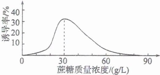 (3) 下图为培养基中蔗糖质量浓度对月季叶愈伤组织诱导率的影响。
