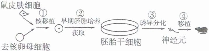 6. 为研究治疗性克隆技术能否用于帕金森病的治疗,科研人员利用帕金森病模型鼠进行如图实验,下列相关叙述错误的是(