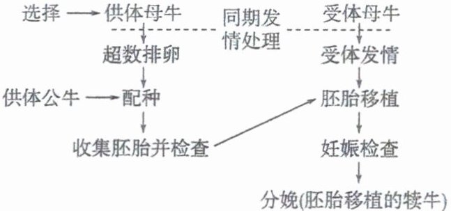 1. 在胚胎移植中,对供体母畜要进行超数排卵处理,对供体、受体要进行同期发情处理。 (