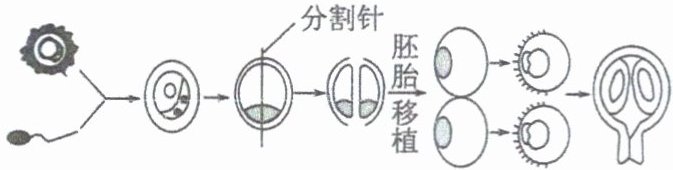 (4)对早期胚胎进行分割可获得遗传物质完全相同的两个新个体。胚胎分割的时期一般是桑葚胚或囊胚时期。对囊胚进行分割时需要将内细胞团均等分割。过程A属于胚胎移植,实质是早期胚胎在相同生理环境条件下空间位置的转移。为了提高移植胚胎的成活率,需要对良种母牛(供体)和普通母牛(受体)用激素进行同期发情处理。