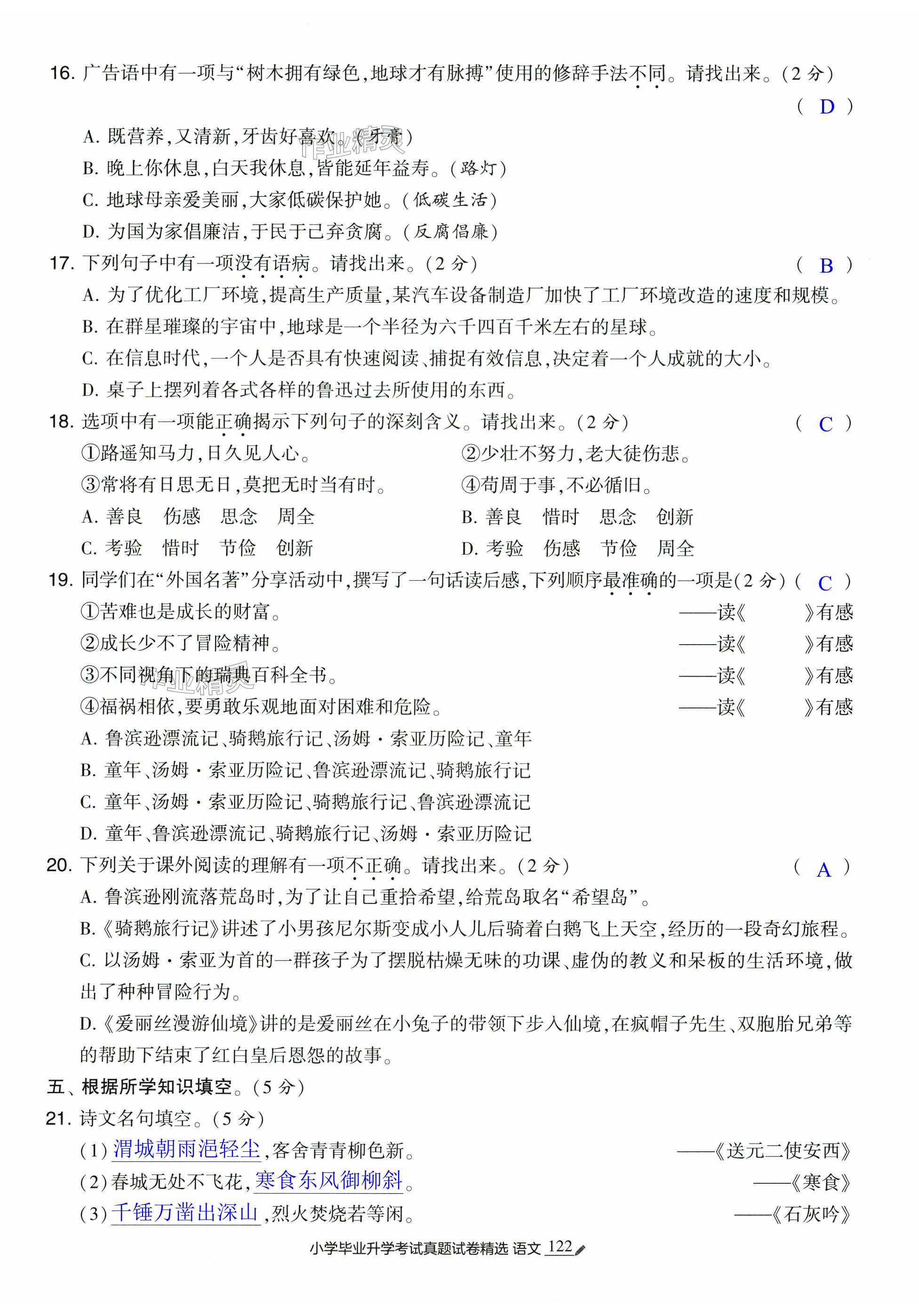 注:目前有些书本章节名称可能整理的还不是很完善,但都是按照顺序排列的,请同学们按照顺序仔细查找。练习册 2025年经纶学典小学毕业升学考试真题试卷精选六年级语文人教版江苏专版 答案主要是用来给同学们做完题方便对答案用的,请勿直接抄袭。