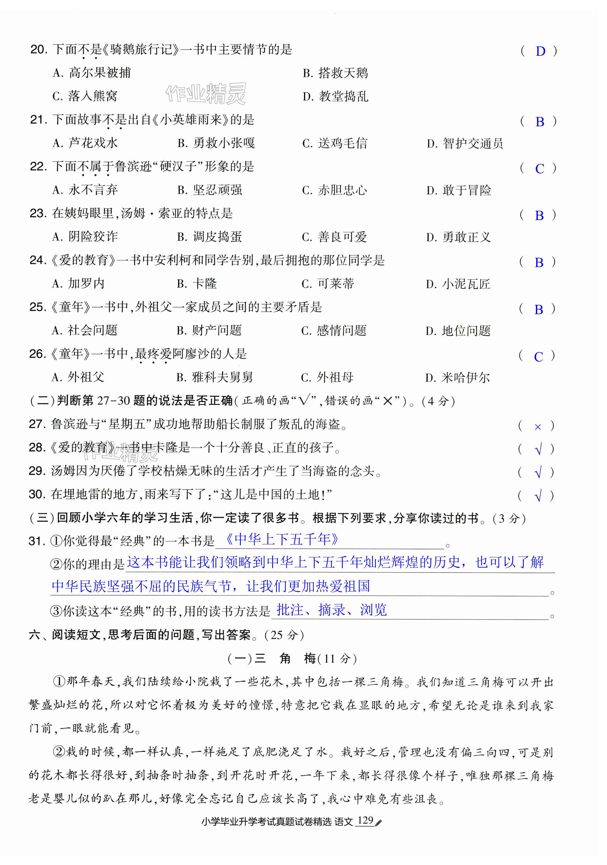 注:目前有些书本章节名称可能整理的还不是很完善,但都是按照顺序排列的,请同学们按照顺序仔细查找。练习册 2025年经纶学典小学毕业升学考试真题试卷精选六年级语文人教版江苏专版 答案主要是用来给同学们做完题方便对答案用的,请勿直接抄袭。