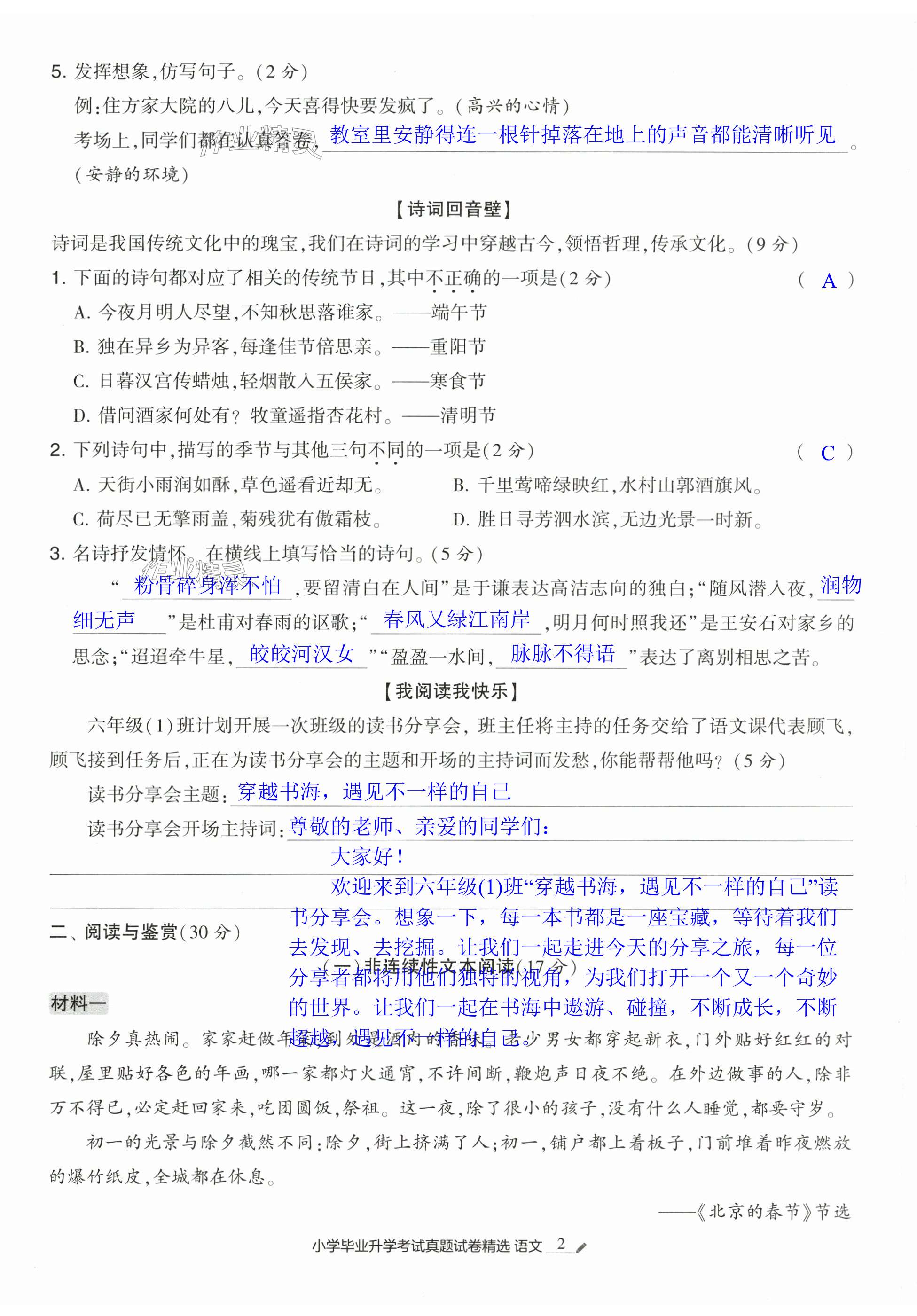 注:目前有些书本章节名称可能整理的还不是很完善,但都是按照顺序排列的,请同学们按照顺序仔细查找。练习册 2025年经纶学典小学毕业升学考试真题试卷精选六年级语文人教版江苏专版 答案主要是用来给同学们做完题方便对答案用的,请勿直接抄袭。