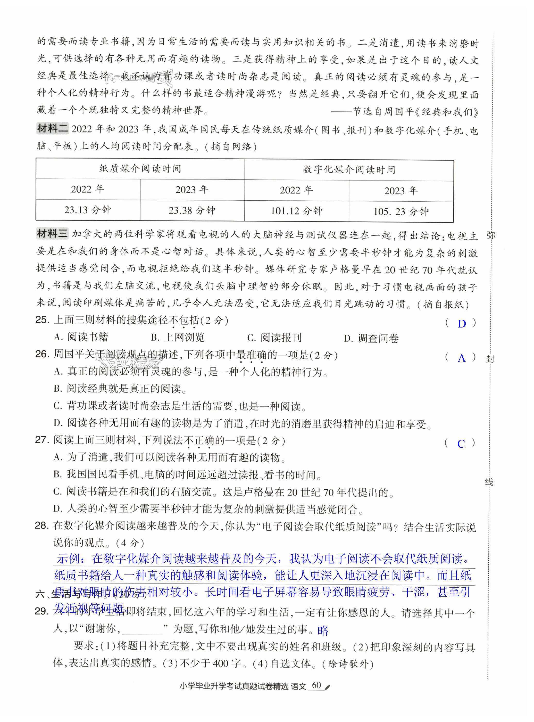 2025年经纶学典小学毕业升学考试真题试卷精选六年级语文人教版江苏专版