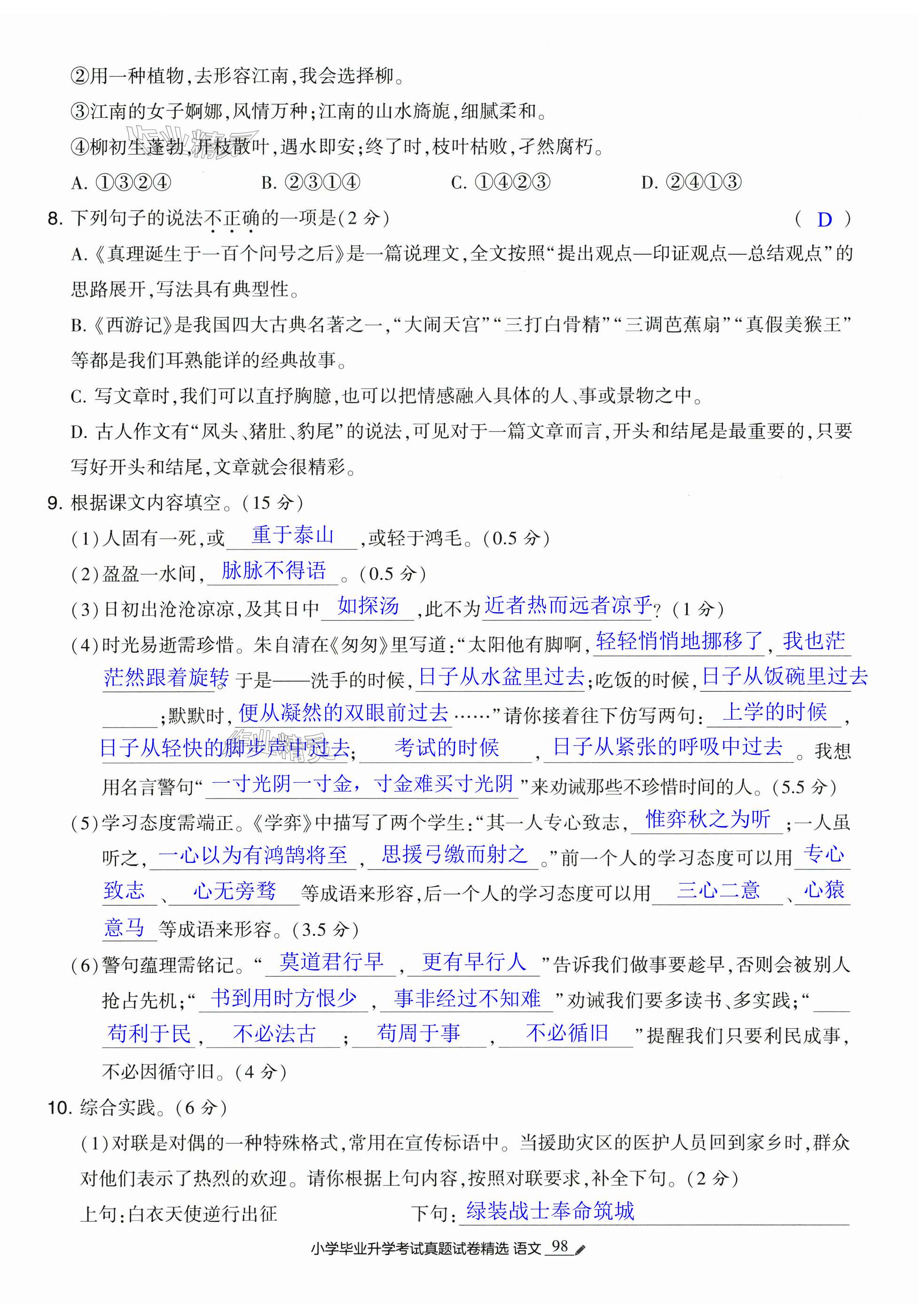 注:目前有些书本章节名称可能整理的还不是很完善,但都是按照顺序排列的,请同学们按照顺序仔细查找。练习册 2025年经纶学典小学毕业升学考试真题试卷精选六年级语文人教版江苏专版 答案主要是用来给同学们做完题方便对答案用的,请勿直接抄袭。