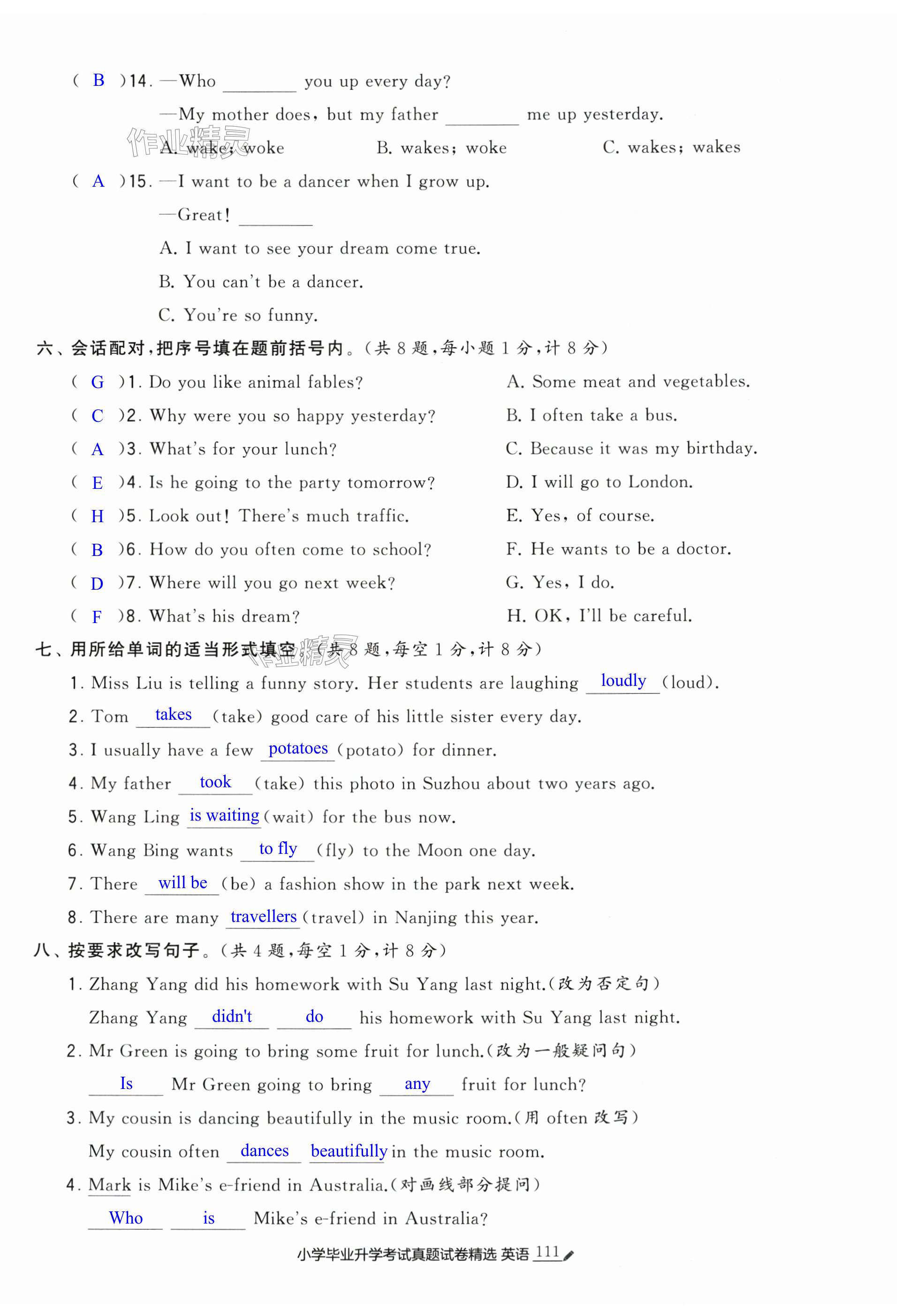 注:目前有些书本章节名称可能整理的还不是很完善,但都是按照顺序排列的,请同学们按照顺序仔细查找。练习册 2025年经纶学典小学毕业升学考试真题试卷精选英语江苏专版 答案主要是用来给同学们做完题方便对答案用的,请勿直接抄袭。