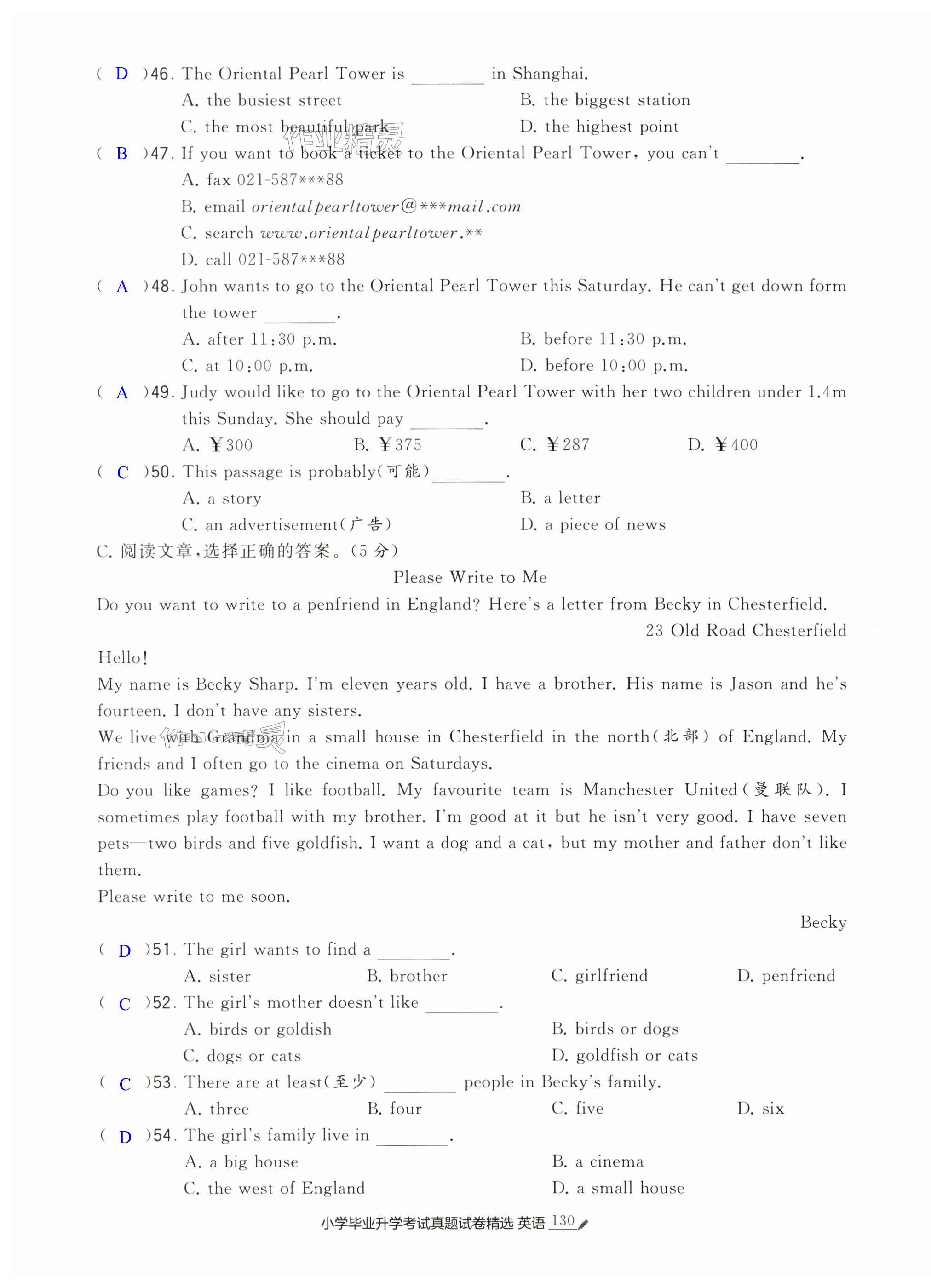 注:目前有些书本章节名称可能整理的还不是很完善,但都是按照顺序排列的,请同学们按照顺序仔细查找。练习册 2025年经纶学典小学毕业升学考试真题试卷精选英语江苏专版 答案主要是用来给同学们做完题方便对答案用的,请勿直接抄袭。