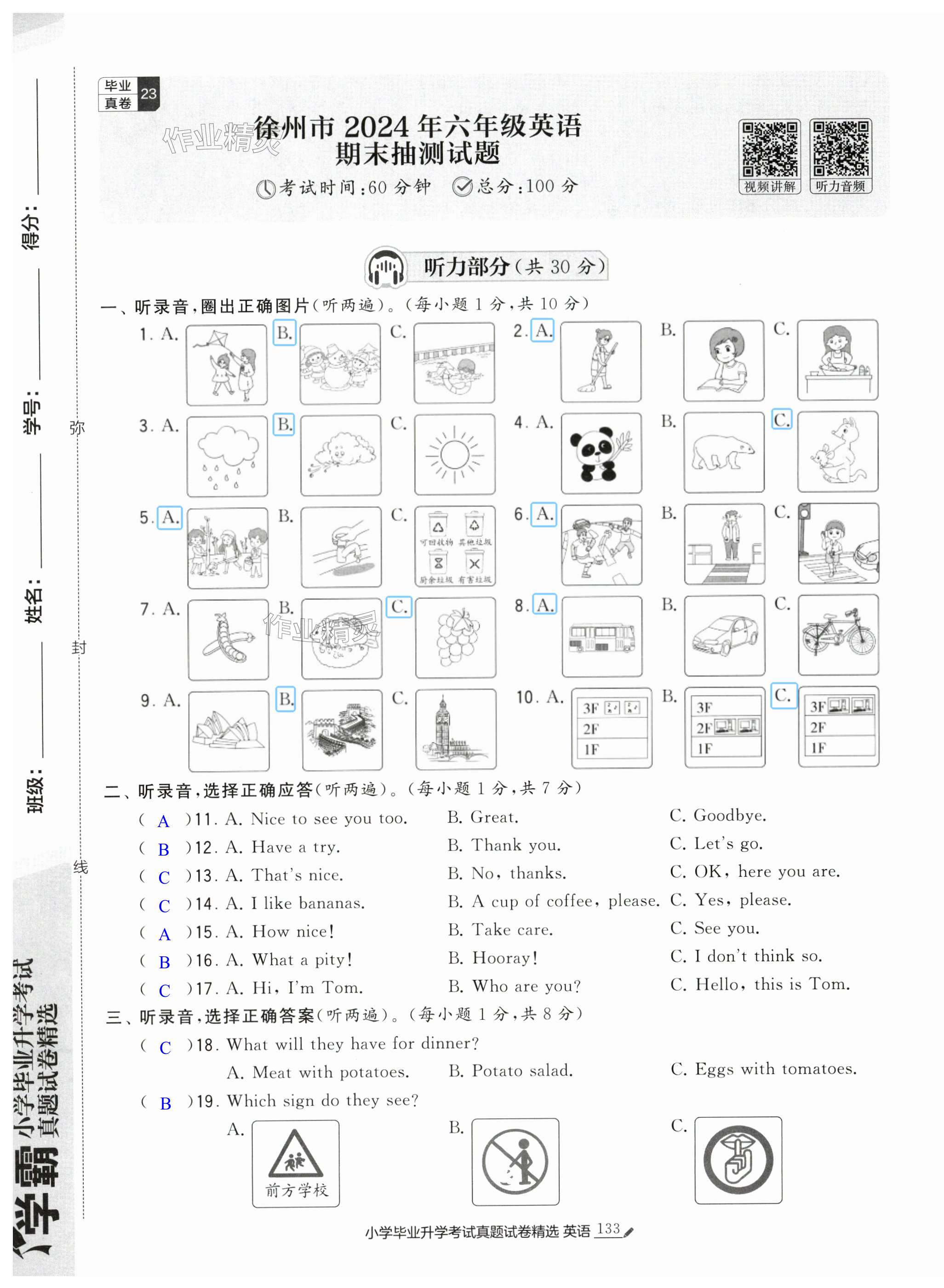 注:目前有些书本章节名称可能整理的还不是很完善,但都是按照顺序排列的,请同学们按照顺序仔细查找。练习册 2025年经纶学典小学毕业升学考试真题试卷精选英语江苏专版 答案主要是用来给同学们做完题方便对答案用的,请勿直接抄袭。