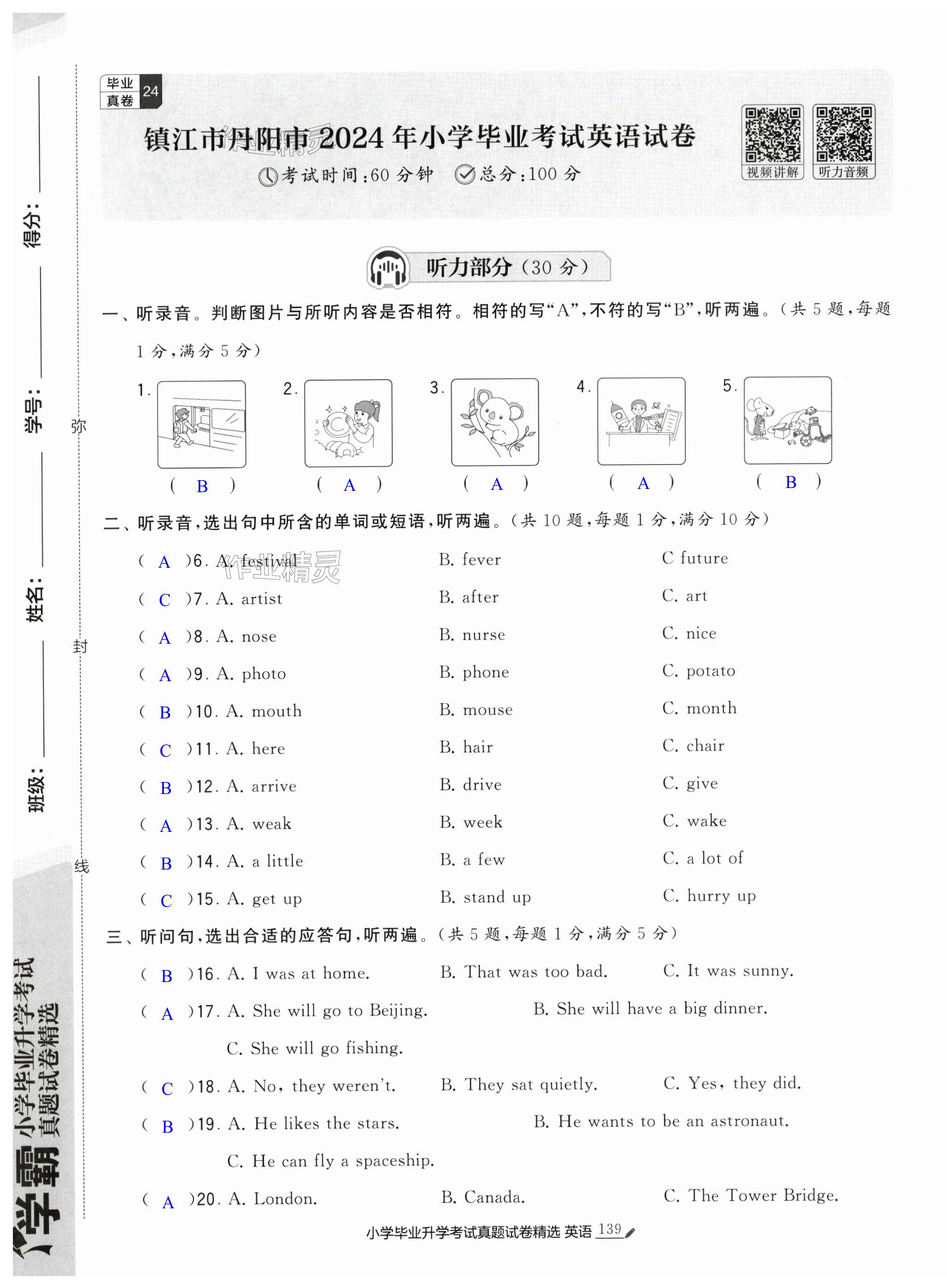 注:目前有些书本章节名称可能整理的还不是很完善,但都是按照顺序排列的,请同学们按照顺序仔细查找。练习册 2025年经纶学典小学毕业升学考试真题试卷精选英语江苏专版 答案主要是用来给同学们做完题方便对答案用的,请勿直接抄袭。