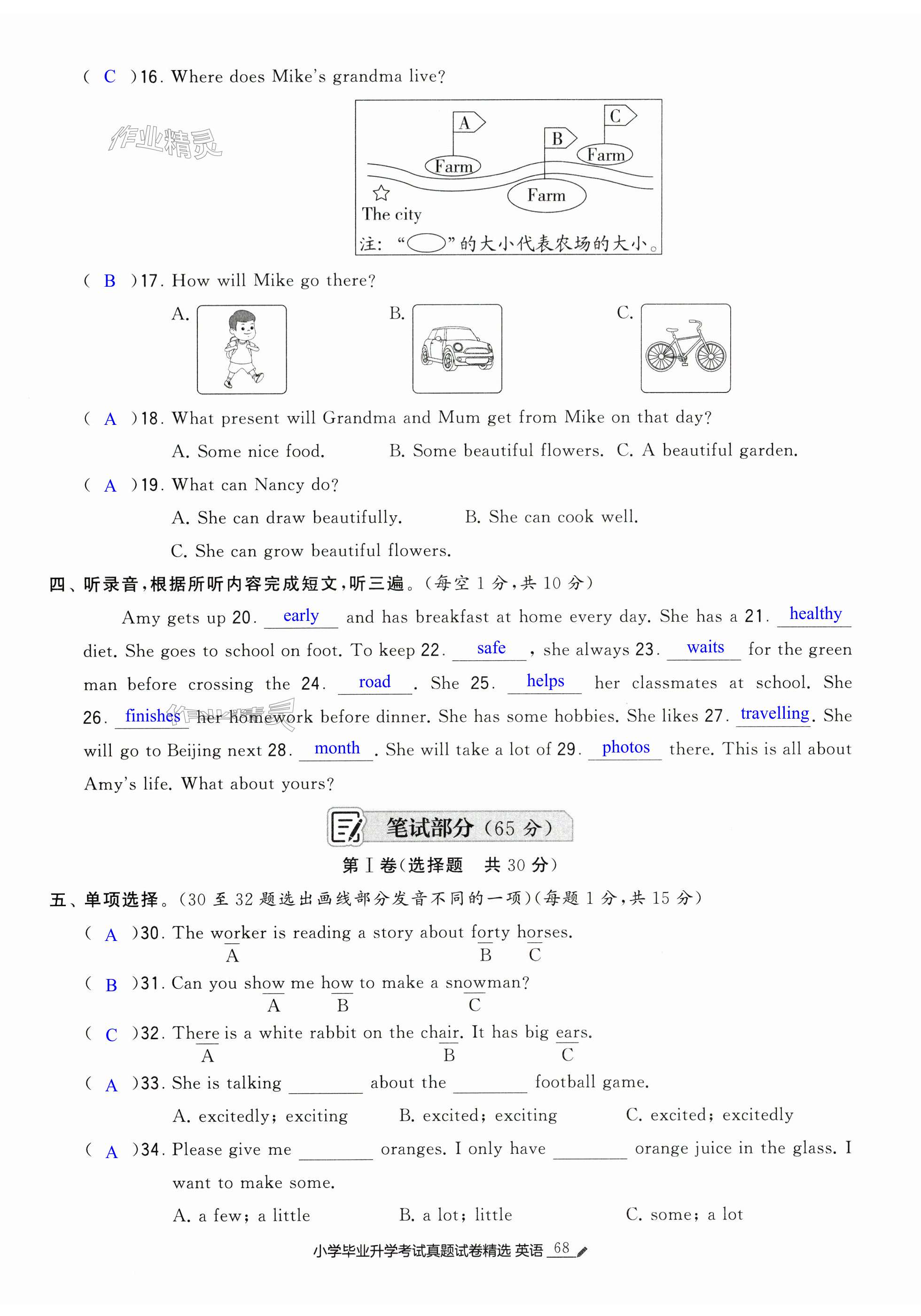 注:目前有些书本章节名称可能整理的还不是很完善,但都是按照顺序排列的,请同学们按照顺序仔细查找。练习册 2025年经纶学典小学毕业升学考试真题试卷精选英语江苏专版 答案主要是用来给同学们做完题方便对答案用的,请勿直接抄袭。