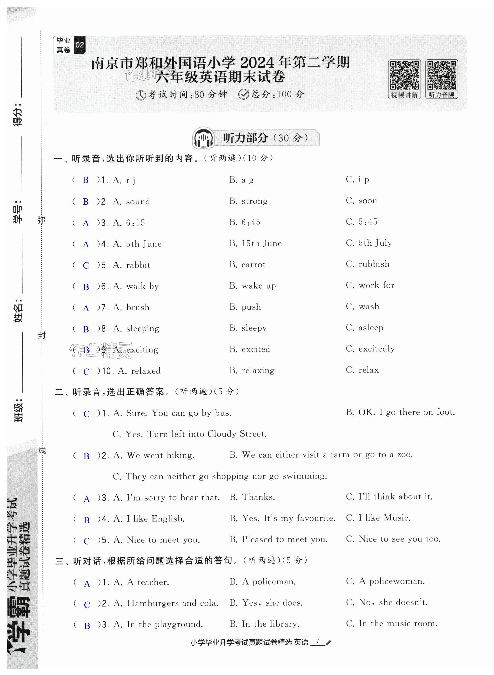 注:目前有些书本章节名称可能整理的还不是很完善,但都是按照顺序排列的,请同学们按照顺序仔细查找。练习册 2025年经纶学典小学毕业升学考试真题试卷精选英语江苏专版 答案主要是用来给同学们做完题方便对答案用的,请勿直接抄袭。