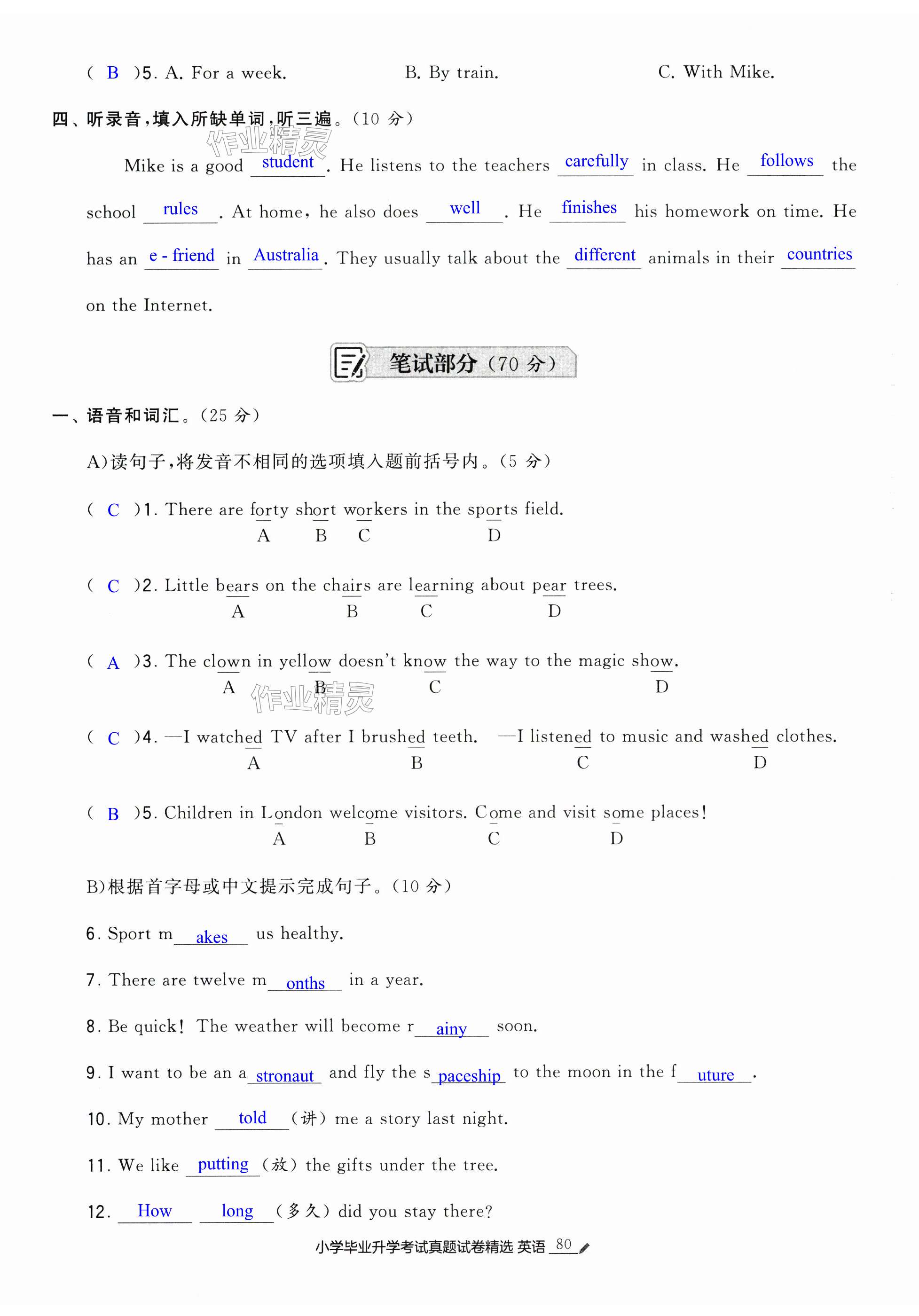 注:目前有些书本章节名称可能整理的还不是很完善,但都是按照顺序排列的,请同学们按照顺序仔细查找。练习册 2025年经纶学典小学毕业升学考试真题试卷精选英语江苏专版 答案主要是用来给同学们做完题方便对答案用的,请勿直接抄袭。