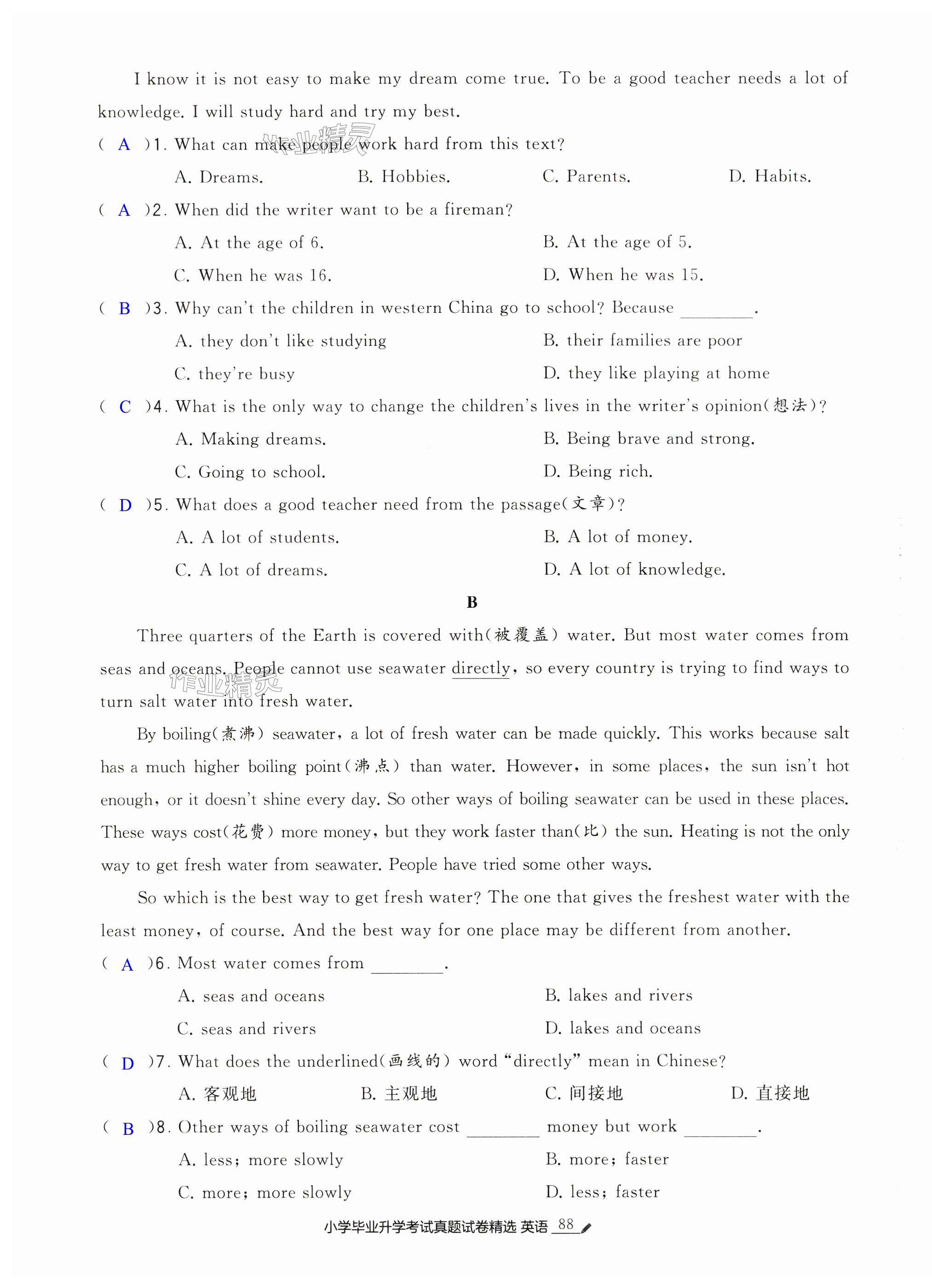 注:目前有些书本章节名称可能整理的还不是很完善,但都是按照顺序排列的,请同学们按照顺序仔细查找。练习册 2025年经纶学典小学毕业升学考试真题试卷精选英语江苏专版 答案主要是用来给同学们做完题方便对答案用的,请勿直接抄袭。
