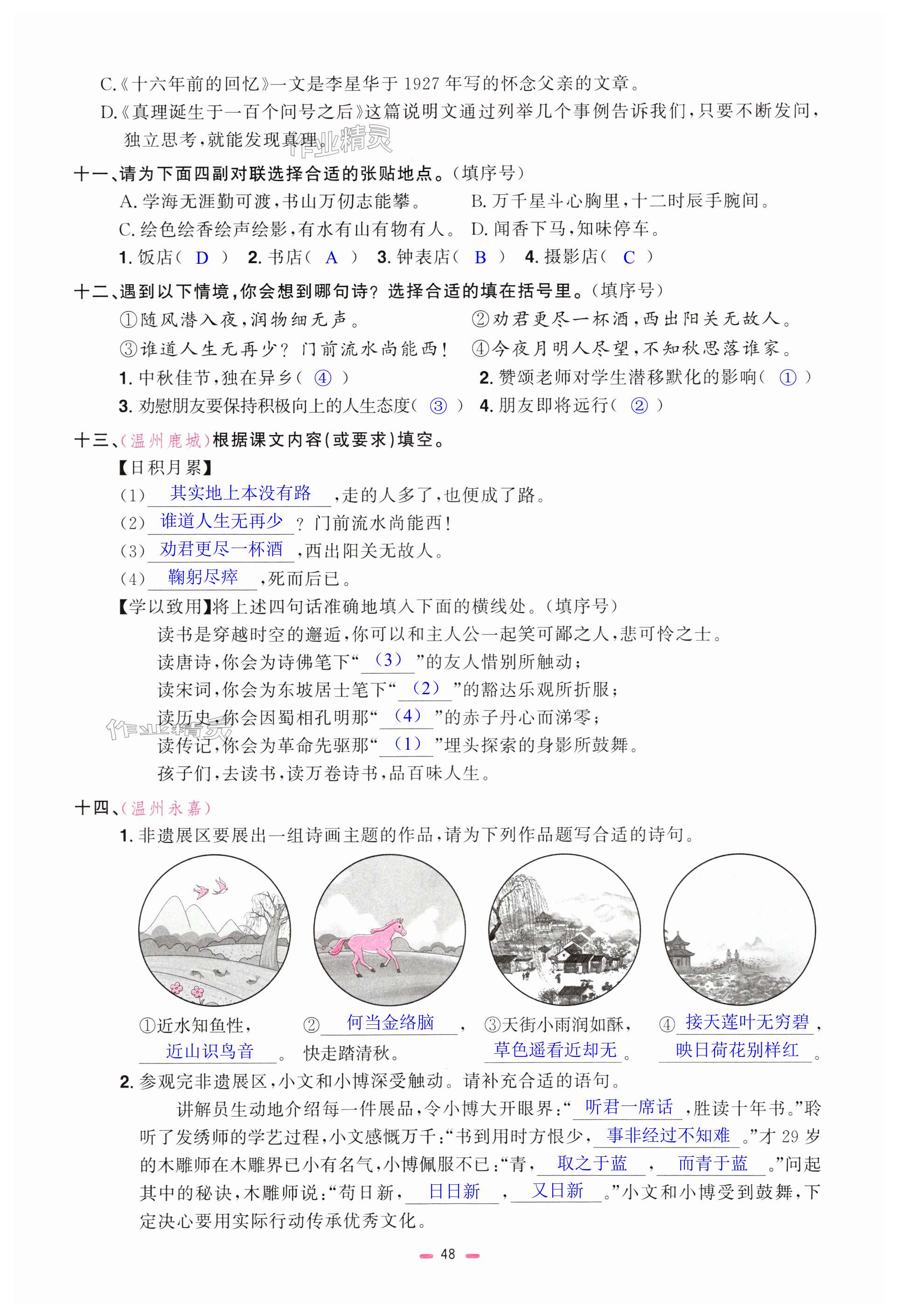 注:目前有些书本章节名称可能整理的还不是很完善,但都是按照顺序排列的,请同学们按照顺序仔细查找。练习册 2025年浙江省阳光同学小学毕业升学系统总复习语文浙江专版 答案主要是用来给同学们做完题方便对答案用的,请勿直接抄袭。