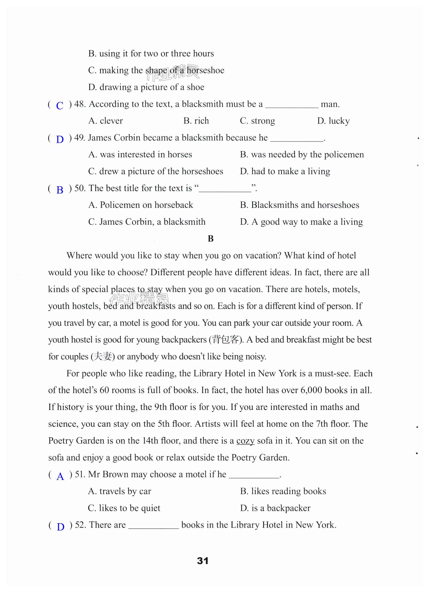 注:目前有些书本章节名称可能整理的还不是很完善,但都是按照顺序排列的,请同学们按照顺序仔细查找。练习册 2025年学习与评价活页卷八年级英语下册译林版 答案主要是用来给同学们做完题方便对答案用的,请勿直接抄袭。