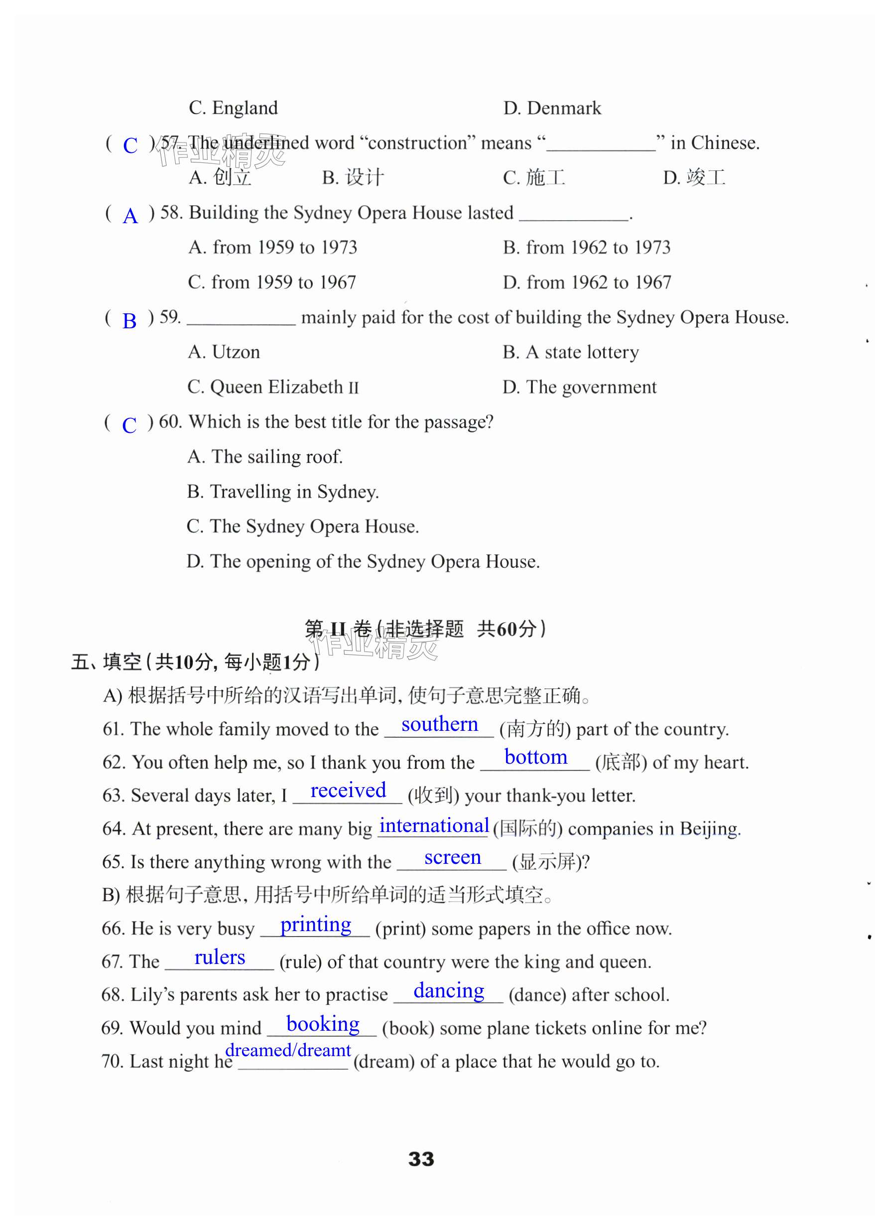 注:目前有些书本章节名称可能整理的还不是很完善,但都是按照顺序排列的,请同学们按照顺序仔细查找。练习册 2025年学习与评价活页卷八年级英语下册译林版 答案主要是用来给同学们做完题方便对答案用的,请勿直接抄袭。