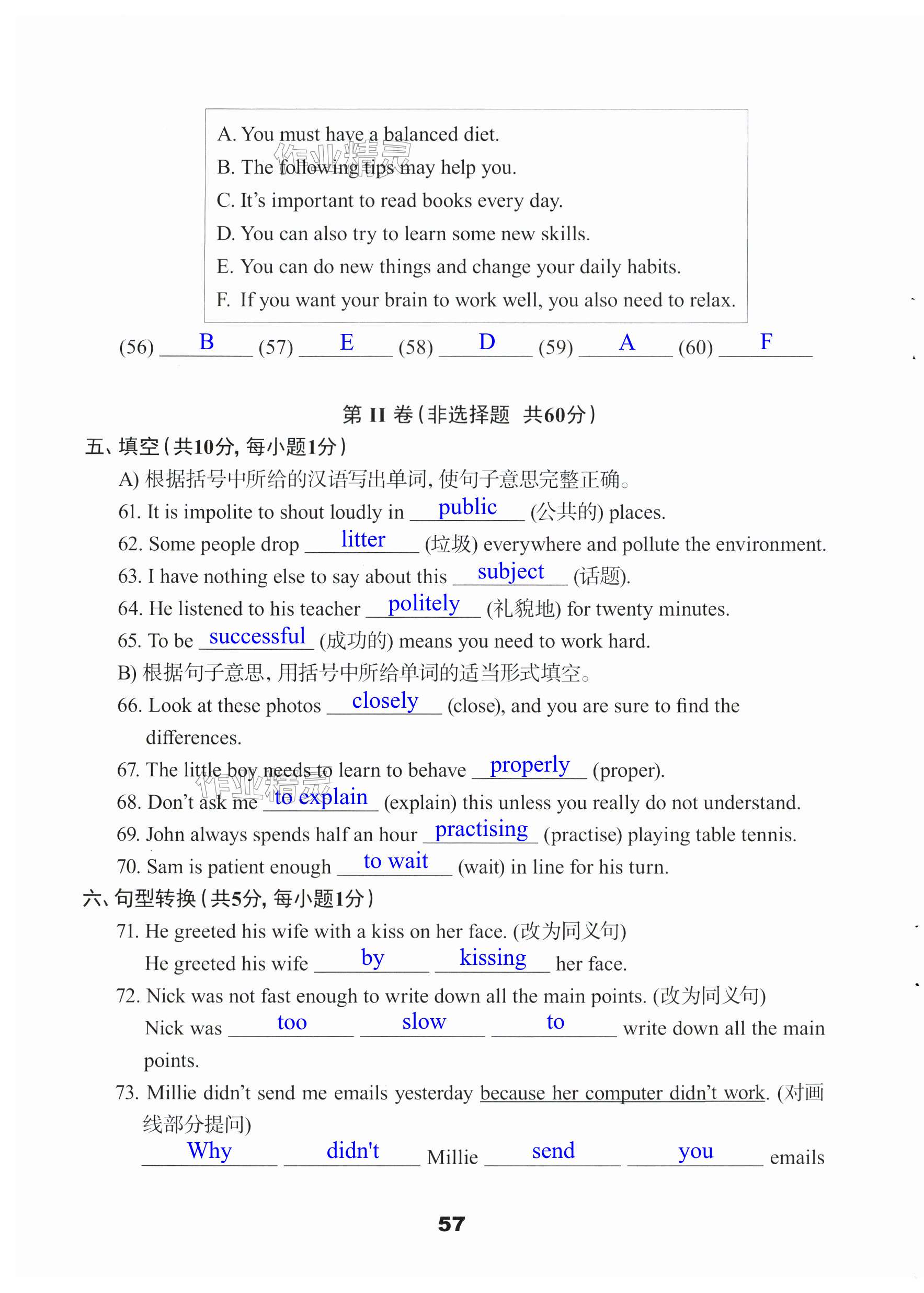 注:目前有些书本章节名称可能整理的还不是很完善,但都是按照顺序排列的,请同学们按照顺序仔细查找。练习册 2025年学习与评价活页卷八年级英语下册译林版 答案主要是用来给同学们做完题方便对答案用的,请勿直接抄袭。