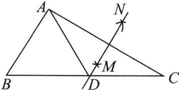 2. 如图,在△ABC中,∠B = 55°,∠C = 30°,分别以点A和点C为圆心,大于$\frac{1}{2}$AC的长为半径画弧,两弧相交于点M、N,作直线MN,交BC于点D,连接AD,则∠BAD的度数为 ( )