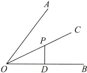 1. 如图,点P是∠AOB平分线OC上一点,PD⊥OB,垂足为D,若PD = 2,则点P到边OA的距离是 ( )