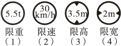 6. 坐在行驶在公路上的汽车里会看到不同的交通标志图形,它们有着不同的意义. 如图所示,如果设汽车的质量为$x$,速度为$y$,宽度为$l$,高度为$h$,用不等式表示图中的意义为:
