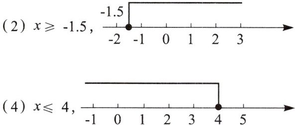 (1) $x > 1$;(2) $x\geqslant - 1.5$;(3) $x < 0$;(4) $x\leqslant 4$.