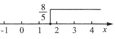 解 去分母,得$2(2x - 5) \leq 3(3x + 2) - 24$,去括号,得$4x - 10 \leq 9x + 6 - 24$,移项,得$4x - 9x \leq 10 + 6 - 24$,合并同类项,得$-5x \leq -8$,系数化为1,得$x \geq \frac{8}{5}$.其解集在数轴上的表示如图所示.