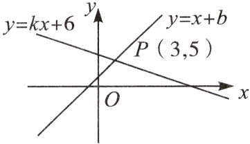 7. 如图,直线$y = x + b$与直线$y = kx + 6$交于点$P(3,5)$,则关于$x$的不等式$x + b > kx + 6$的解集是_______.