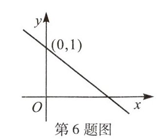 6. 如图,一次函数$y = kx + b$的图象与$y$轴交于点$(0,1)$,则关于$x$的不等式$kx + b < 1$的解集是_________________.