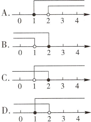 2. (2021·湘潭)不等式组$\begin{cases}x + 1\geqslant 2\\4x - 8 < 0\end{cases}$的解集在数轴上表示正确的是 ( )