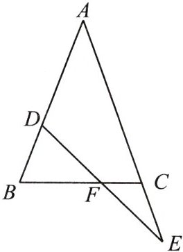 15. 如图,△ABC中,AB = AC,点D在AB上,点E在AC的延长线上,且BD = CE,DE交BC于F,求证:DF = EF.