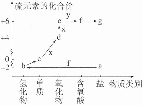 3.B 解析:a、g的焰色均为黄色,则a、g为钠盐;单质c为硫单质,硫易溶于酒精而难溶于水,A错误;b为硫化氢气体,硫化氢气体和氯化钡溶液不反应,B正确;d为二氧化硫,二氧化硫具有漂白性,但是不能使酸碱指示剂褪色,C错误;f为浓硫酸,浓硫酸具有强氧化性,能将碘离子氧化为碘单质,不能用于制取HI,D错误。