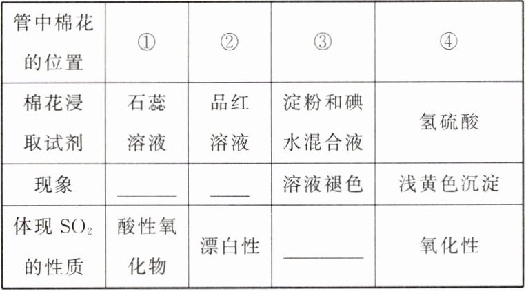 色,体现了二氧化硫的漂白性;二氧化硫通过淀粉和碘水