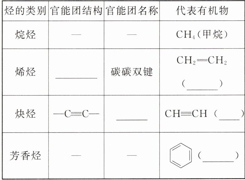 三、1. 碳碳双键 乙烯 碳碳三键 乙炔 苯