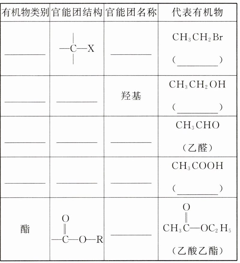 2.卤代烃 碳卤键 溴乙烷 醇 —OH 乙醇 醛 —CHO 醛基 羧酸 —COOH 羧基 乙酸 酯基