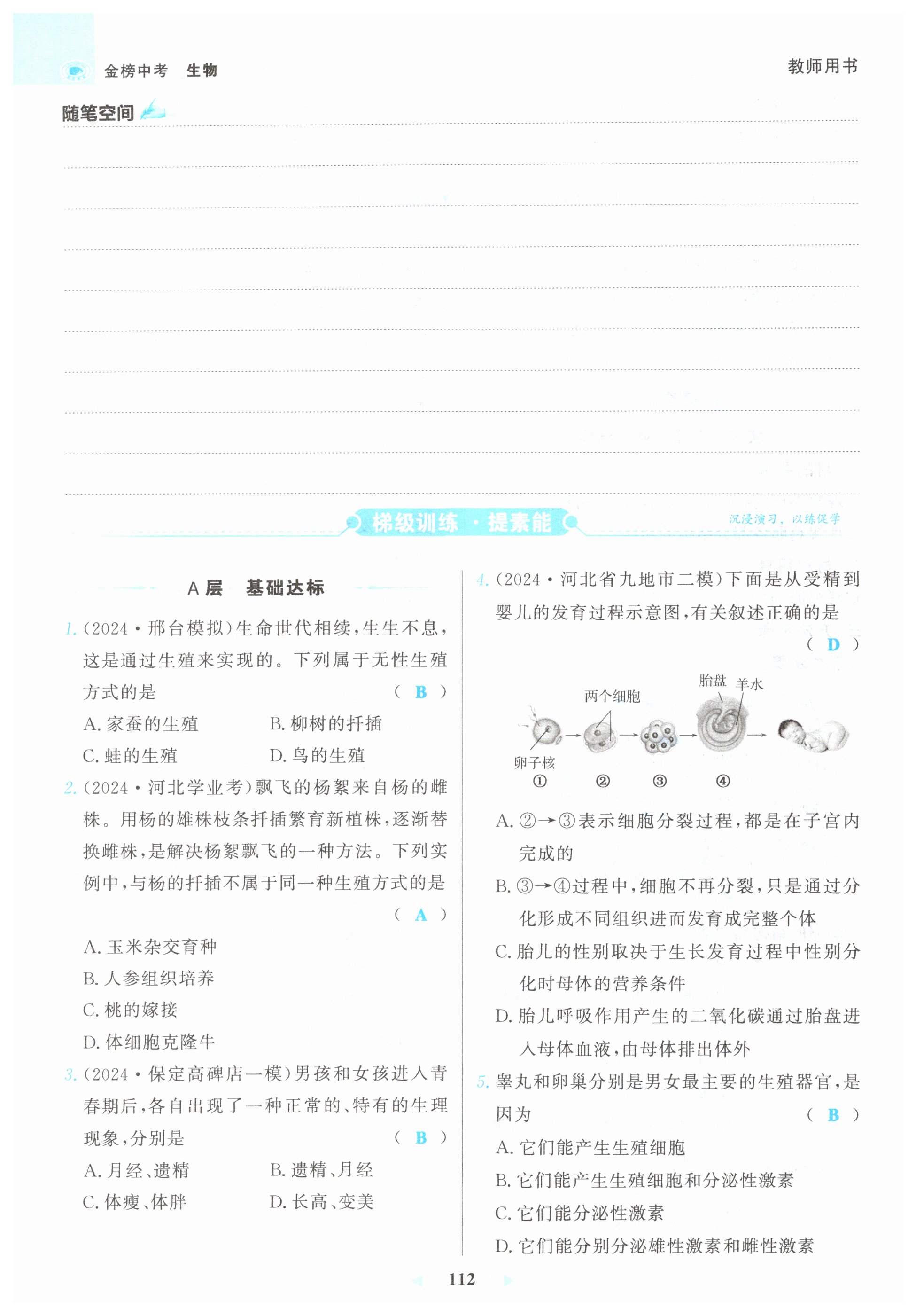 注:目前有些书本章节名称可能整理的还不是很完善,但都是按照顺序排列的,请同学们按照顺序仔细查找。练习册 2025年世纪金榜金榜中考生物河北专版 答案主要是用来给同学们做完题方便对答案用的,请勿直接抄袭。