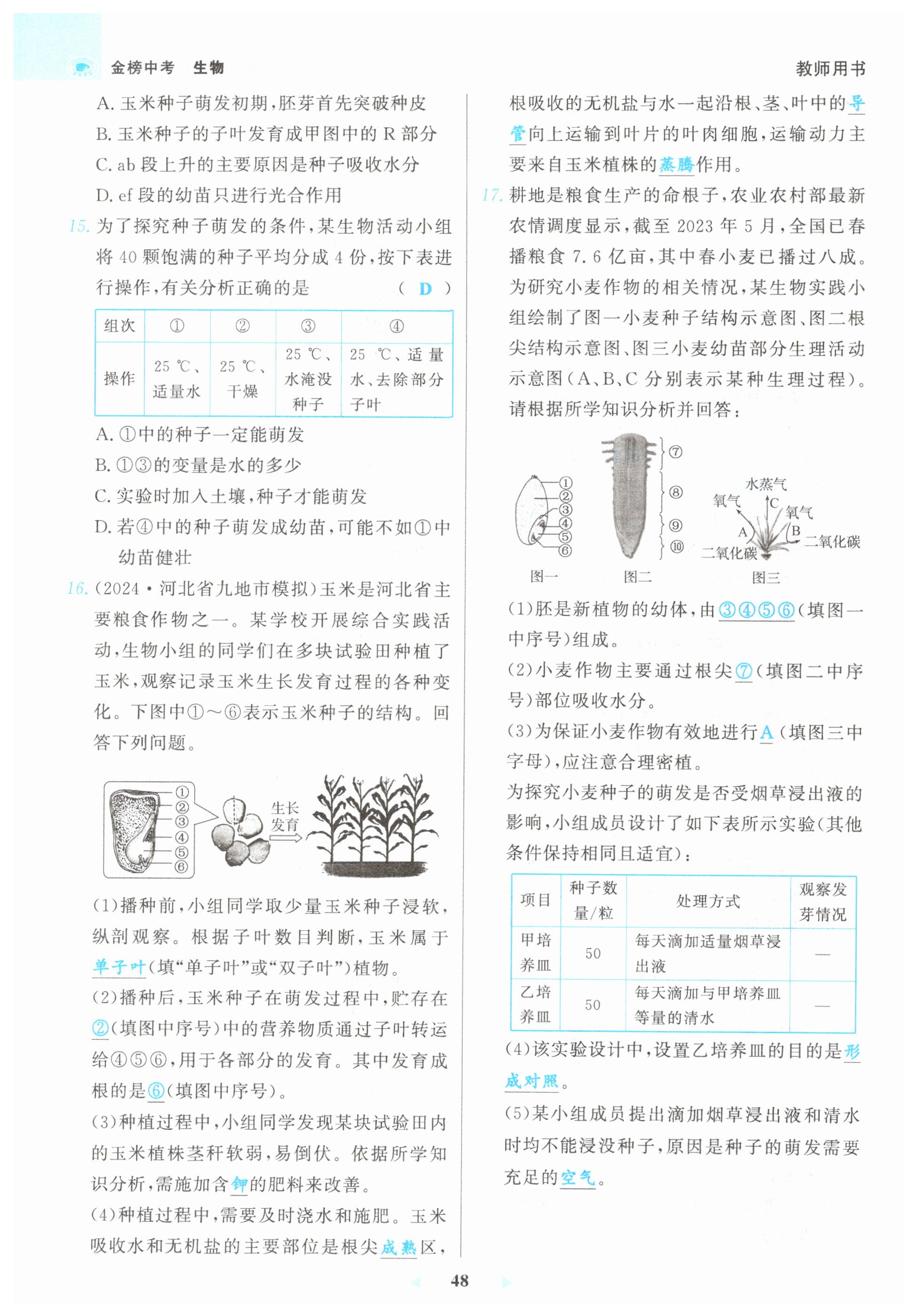 注:目前有些书本章节名称可能整理的还不是很完善,但都是按照顺序排列的,请同学们按照顺序仔细查找。练习册 2025年世纪金榜金榜中考生物河北专版 答案主要是用来给同学们做完题方便对答案用的,请勿直接抄袭。