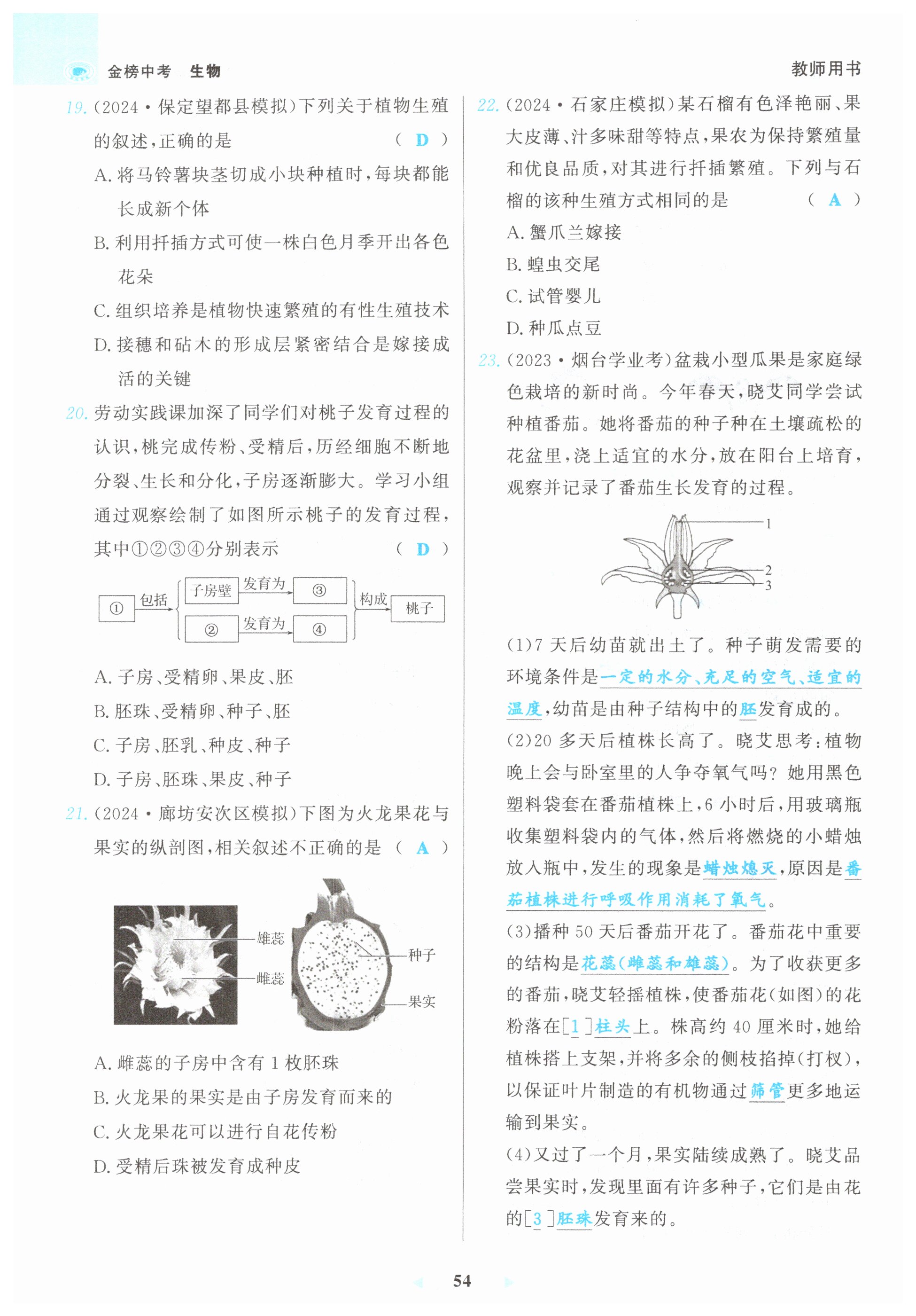 注:目前有些书本章节名称可能整理的还不是很完善,但都是按照顺序排列的,请同学们按照顺序仔细查找。练习册 2025年世纪金榜金榜中考生物河北专版 答案主要是用来给同学们做完题方便对答案用的,请勿直接抄袭。